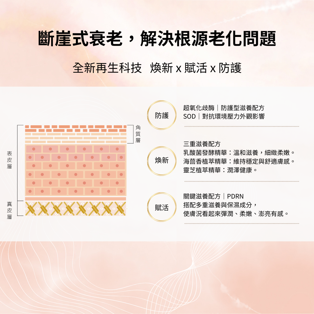 產品含維他命A衍生物,白天須加強防曬劑,料體隨時間變深或變化屬正常反應,不影響效能。
